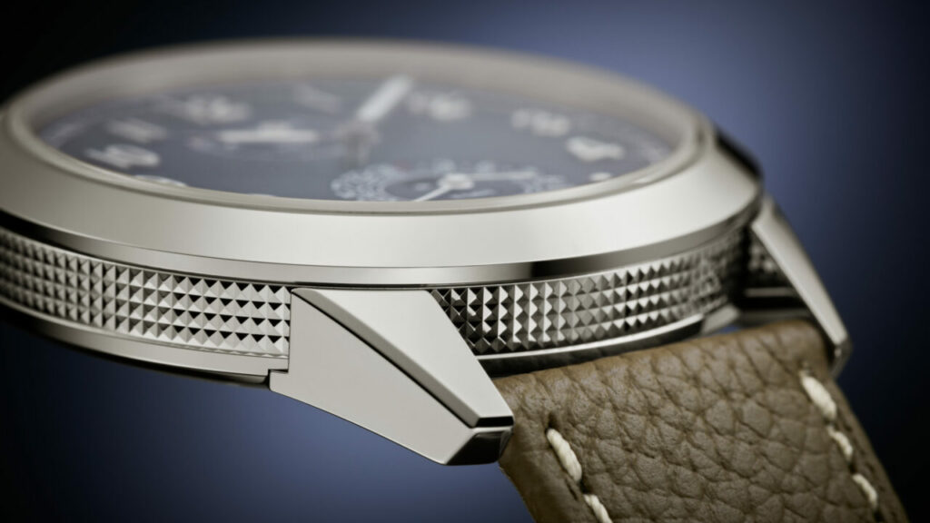 La esfera azul texturizada con degradado negro presenta una disposición vertical de indicaciones que refuerza la legibilidad y la identidad del modelo: reserva de marcha en arco a las 12 horas, mientras que el día, la fecha y el segundero pequeño se agrupan a las 6. La caja de oro blanco de 41 mm se distingue por la carrura decorada con el clásico motivo Clous de Paris, un detalle emblemático en el lenguaje estético de la firma.