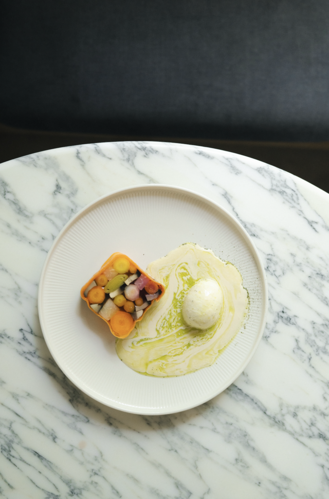 El diseño interior juega con la luz y las texturas, creando rincones que invitan tanto a la contemplación como al disfrute social. Cada elemento, desde el mobiliario hasta la iluminación, refleja una visión estética que convierte al restaurante en un escenario perfecto para vivir la gastronomía como un acto cultural.