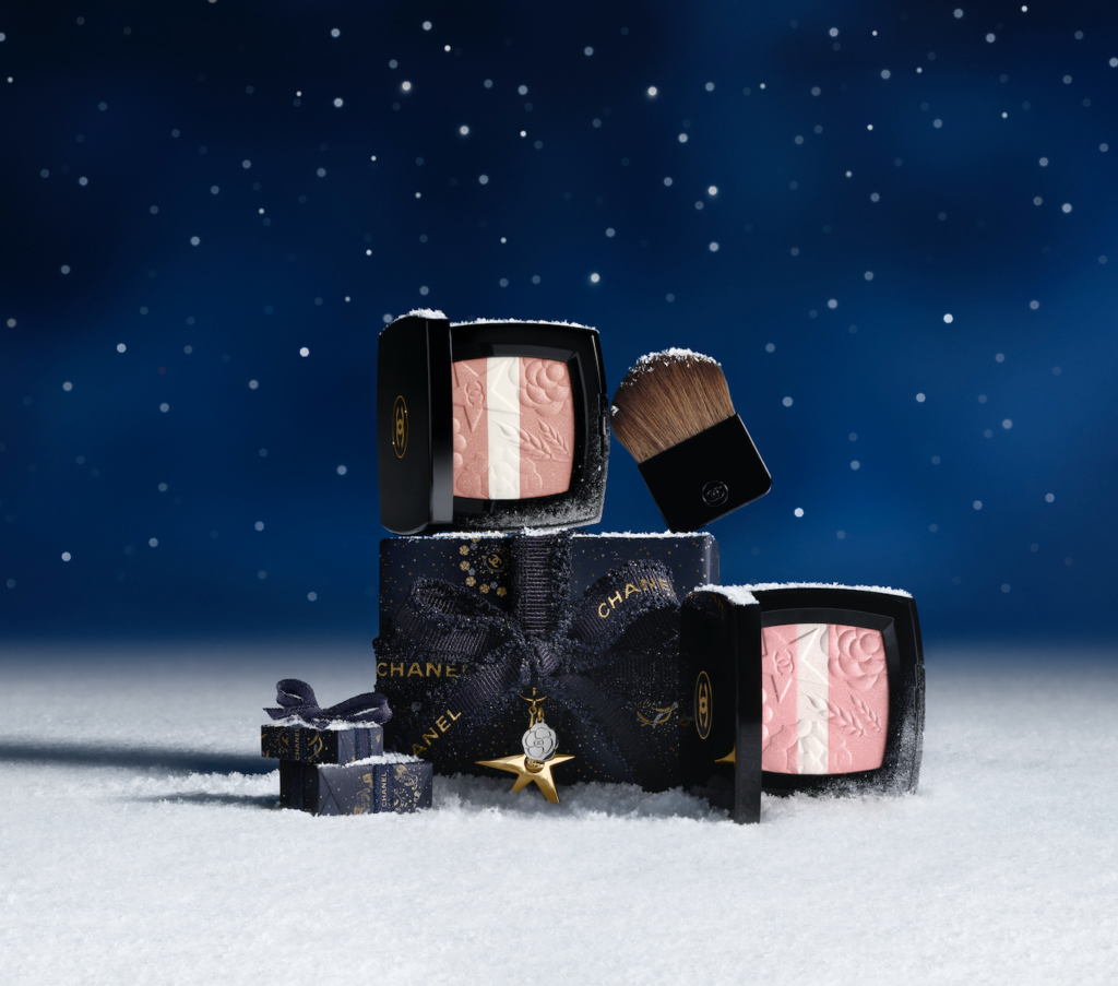 La colección se despliega con LES SIGNES DE CHANEL, duos de blush e iluminador que envuelven la piel en reflejos satinados. ROSE LUMIÈRE presenta un rosado frío etéreo, mientras que PÊCHE LUMIÈRE apuesta por matices durazno con acentos dorados nacarados. Ambas creaciones, grabadas con los cinco signos icónicos de la Maison, evocan la luminosidad suave de un cielo estrellado.