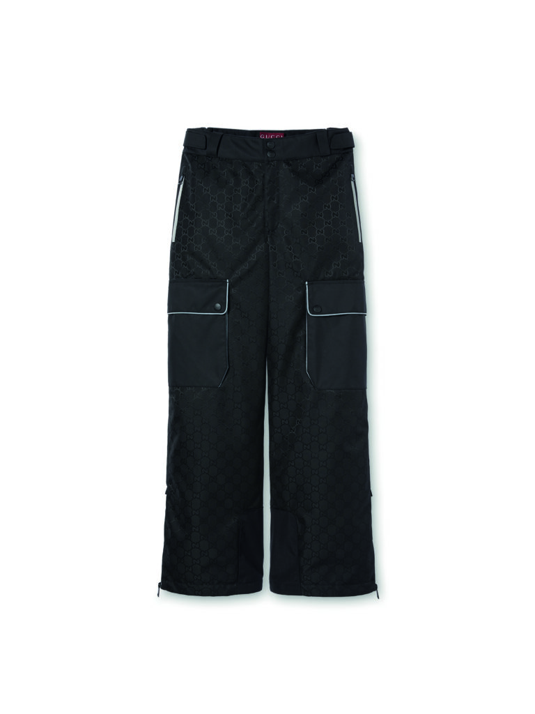 La colección redefine la ropa alpina desde una perspectiva contemporánea, donde la forma y la función se unen en un lenguaje visual de precisión, elegancia y control. Diseñada con tecnología de vanguardia, las prendas presentan construcciones transpirables de tres capas, acabados resistentes al agua y detalles funcionales como bolsillos para pases de esquí e interiores táctiles, manteniendo la sofisticación característica de Gucci.