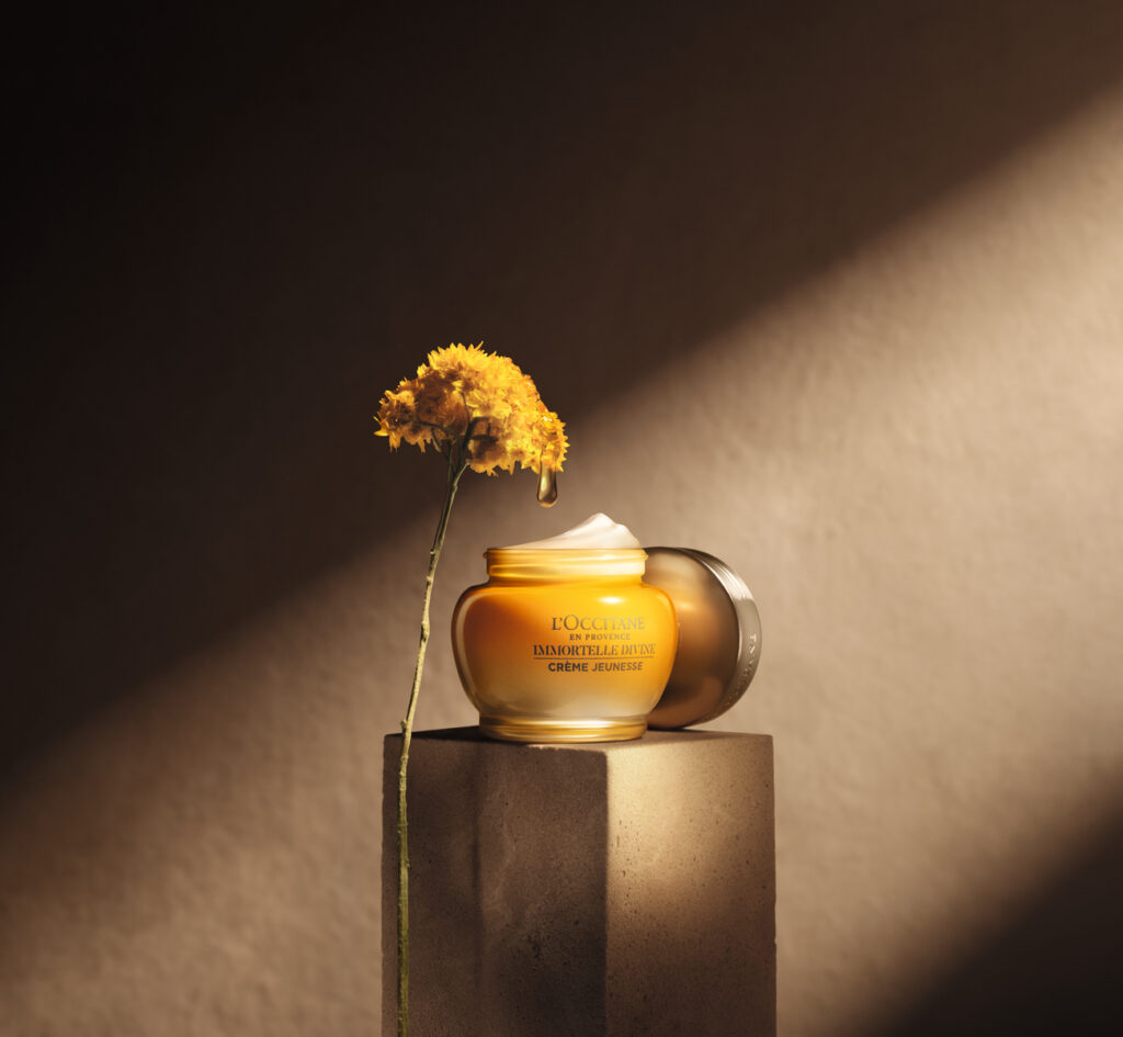 La Immortelle no se marchita, incluso después de ser cortada. Este fenómeno natural ha sido estudiado por más de 20 años por los laboratorios de L’OCCITANE, resultando en activos como:
