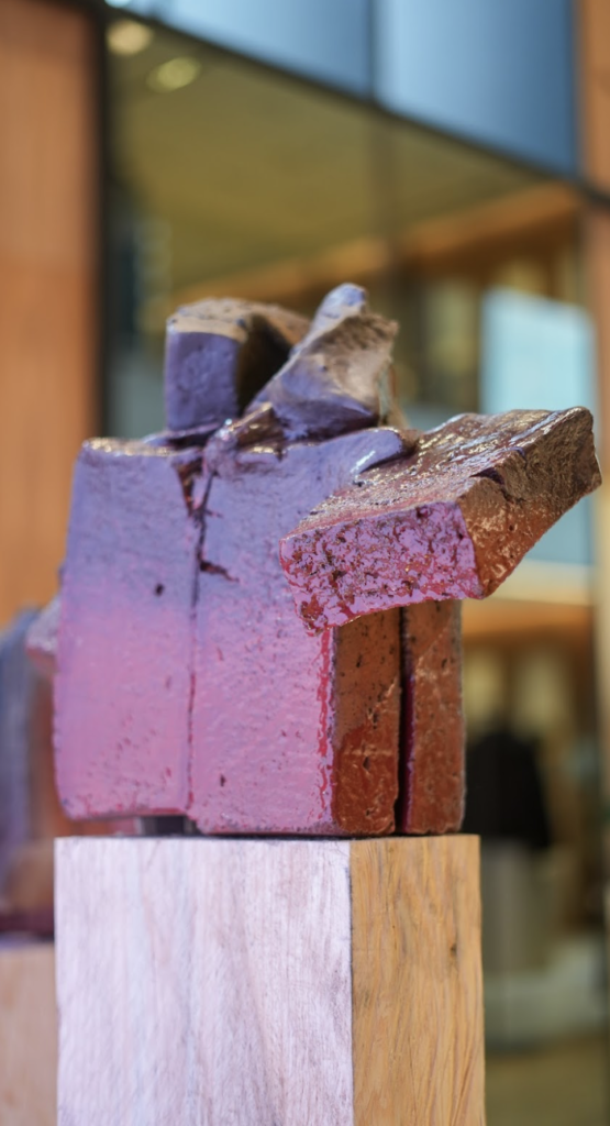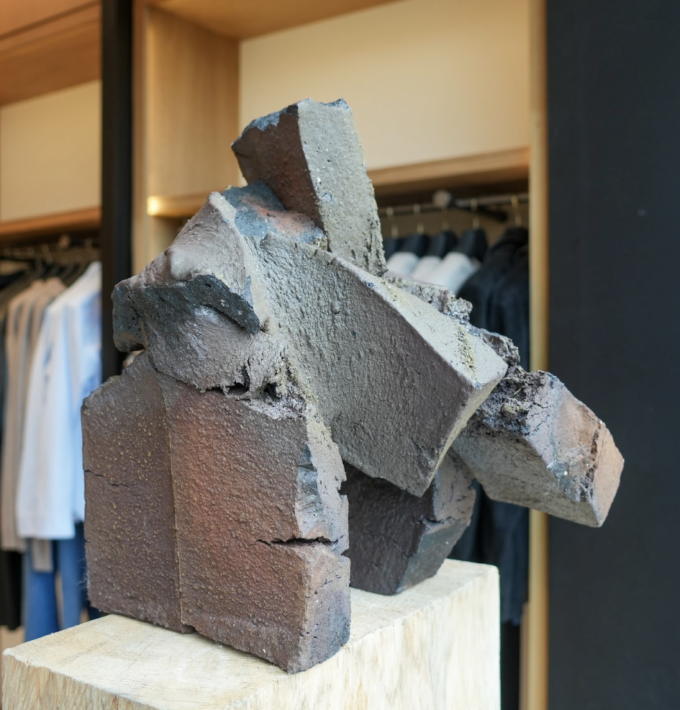 La instalación reúne nueve piezas únicas que conviven en el espacio y dialogan con la arquitectura de la tienda. El trabajo de Disciplina Studio se caracteriza por la exploración de técnicas artesanales aplicadas a materiales comunes, reinventando procesos creativos y desdibujando los límites entre lo escultórico y lo funcional.