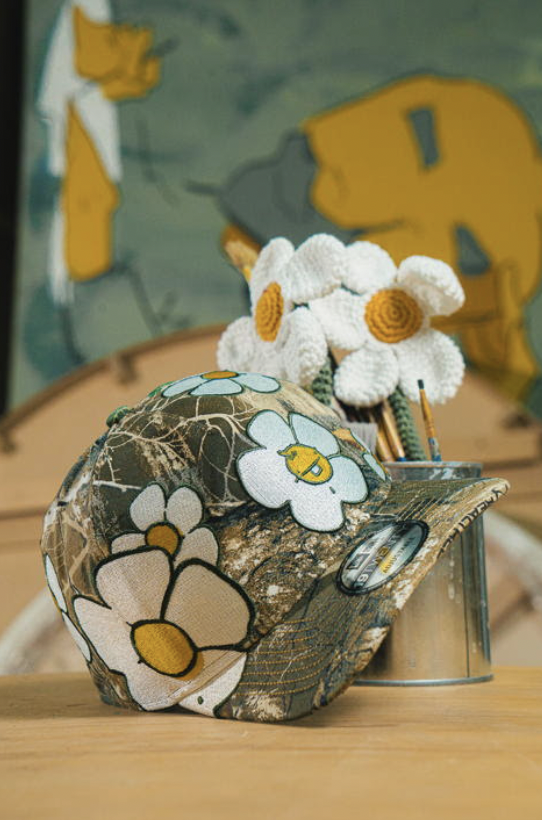 Con motivo de la inauguración, la marca presenta el drop exclusivo New Era x Rodrigo Roji x Only While I’m Here, disponible únicamente en esta tienda desde el 5 de febrero. La cápsula incluye dos siluetas icónicas: la 9FORTY y la 19TWENTY. Ambas reinterpretan el lenguaje visual de Roji a través de flores —símbolo recurrente en su obra— y el personaje Rub, integrados sobre patrones Realtree® EDGE camo, una de las tendencias clave en 2026.