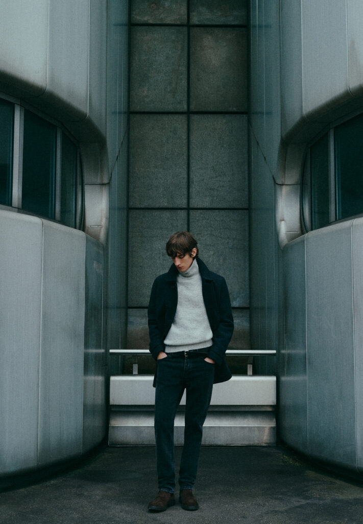 Los tonos neutros —negro, camel, grafito y azul profundo— construyen un guardarropa versátil con abrigos estructurados, punto robusto, denim oscuro y piezas de inspiración utilitaria. El resultado es una estética cinematográfica y contemporánea que reinterpreta el ADN de Scalpers desde un enfoque introspectivo.