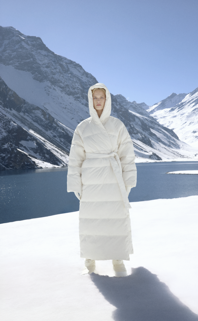 La campaña, fotografiada por Laura Obermeyer y Jackie Nickerson en los paisajes imponentes de las montañas chilenas, captura la fuerza del entorno natural a través de capas monocromáticas y composiciones de alto contraste que unen moda técnica y narrativa visual.